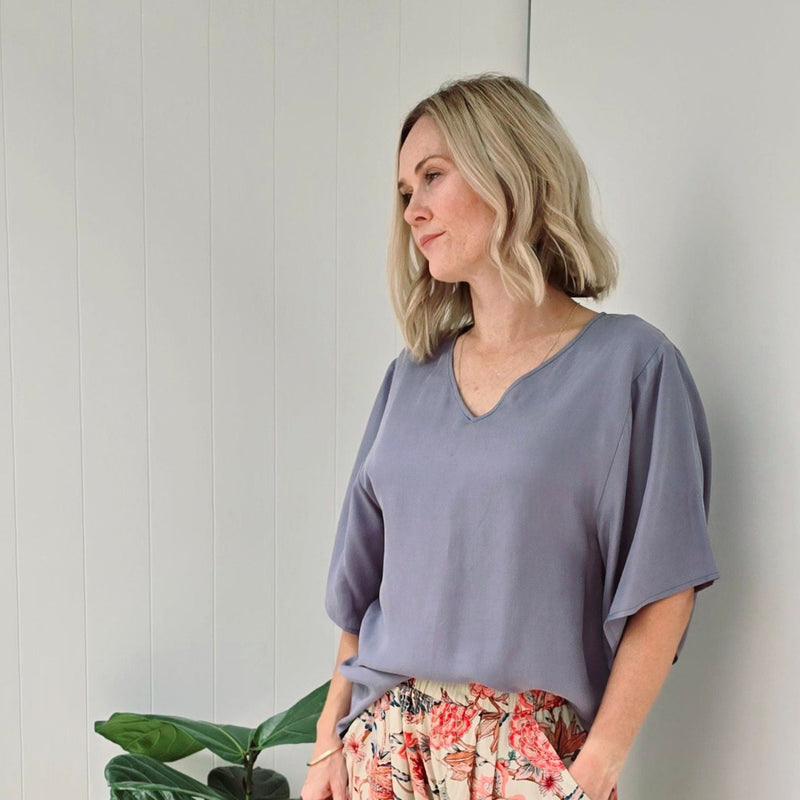 This hi-low top with v-neck and floaty short sleeves will take you from desk to dinner. Team with our Applaud pant for an effortless off-duty look, or wear over wet-look leggings for sleek evening style. Generous in size it's made to be worn loose and floaty, but if you're after a not-so-oversized look choose a size down to your regular fit.
